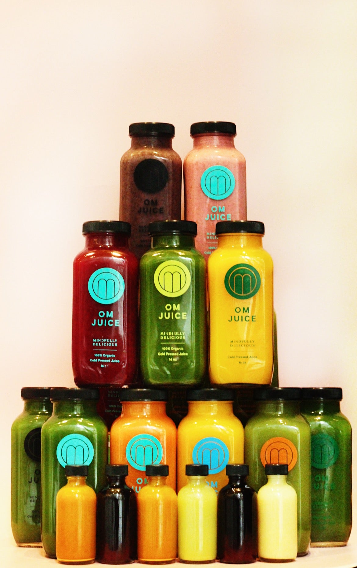 - OM Juice – Apple, carrot, pineapple, lemon, ginger, cayenne.